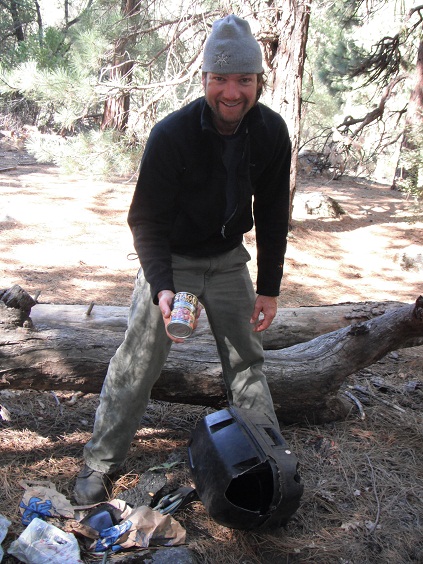 The pannier was cracked like a coconut and the bear ate the peanut butter. The can of chili was untouched. Eric admits this is his fault.
