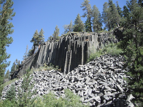 マンモスレイク(Mammoth Lake)という街で395を降りてここの見所デビルズポストパイル(Devil's Postpile Nat'l Monument)を見に行きました。ここへ入るには10ドルかかります。高いのか高くないのか期待半分でいきます。マンモスレイクからデビルズまでワインディングを走って30分くらいですかね。景色もイイですし、こりゃあ期待できるかな?