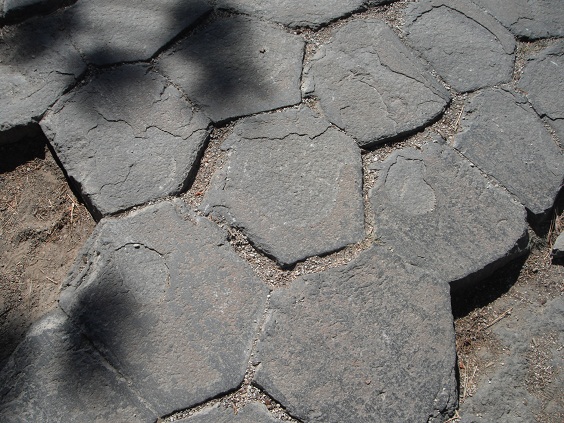 駐車場からデビルポストパイルまで5分くらい歩きます。なかなかの見応えです。溶岩が氷河に急速に冷やされて六角形の柱に固まったそうです。自然は面白いなぁ。ここで引き返しても良かったのですが、10ドルも払ったしレインボーフォール(Rainbow Fall)へ。片道3.2キロです。