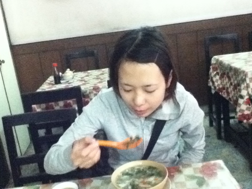 コウイチは部屋で昼寝していたんだけど、中華を食べたがっていたので、遅い昼飯を「香港飯店」にて。コウイチはスープと炒麺。