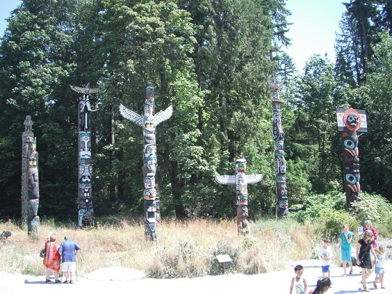 昼飯を食べたら今度はトーテム・ポールを見に。広場に7本のトーテムが建ててあります。よくテーマパークとかに偽物がありますけど、これは本物です。ワシはネイティブ・アメリカンのデザインが好きですね