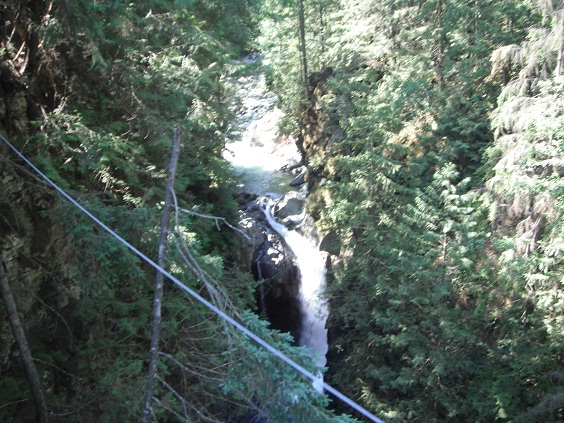 Back to Downtown and then caught Seabus to North Vancouver. From Londsdale bus stop, I took 229 bus to Lynn Valley. Here has a suspenson bridge. Capilano is famous for a suspension bridge bt it costs a lot to walk across it. But the one in Lynn is free! It was quite high (40m or so) and pretty long (70m or so), so if you are afraid of height, you shouldn't be there. The view fom the bridge is great. I saw a few young guys were jumping off from a clif to the cleek. It seemed really high up there, so they must hurt a lot to jump into water....