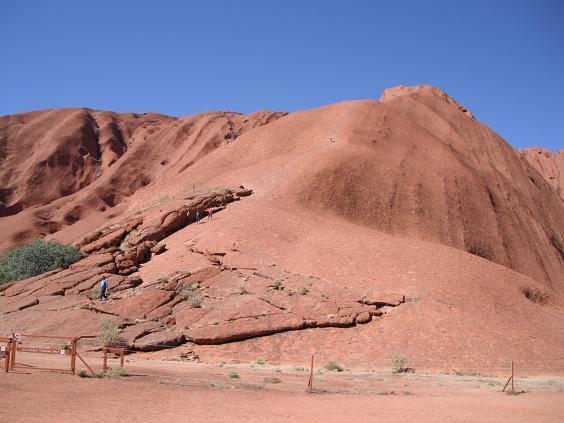 さあ、いよいよエアーズロックへ。国立公園内に入るのには、25ドルかかります。これはしょうが無い。Sunset View Pointで写真を撮り、登り口へ。相変わらず急斜面です。モトクロスブーツではかなり登りにくそうです。