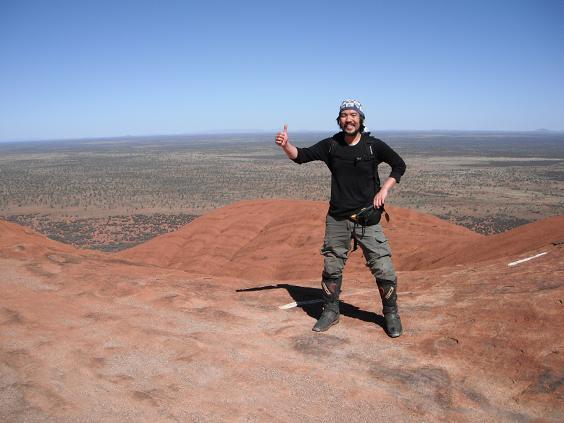 エアーズロックには昼飯を食べてから行こうとリゾートを歩いてたら、Devils Marblesで会ったSong一向を発見。Songは日本生まれの韓国人で、ベルギー人のDamianとドイツ人のTatianaと車で旅をしてます。今日はすでにエアーズロックに行き、これからオルガ、今夜はCurtin Springsに泊まるそうです。それからAliceへまた上がり、Cairnsを目指します。良い旅を!