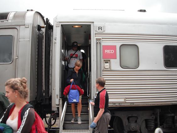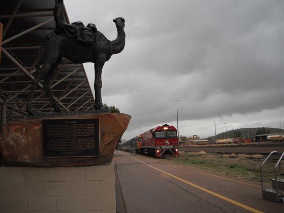 12時近くに列車の姿が見えましたが、なかなか到着しません。亀の様なノロさで近づいてきます。先頭から4両目位の車両にLauraを発見!約一週間ぶりの再会です。小雨が降るなか彼女の20キロのバックパックを背負って宿まで約1キロ歩きます。 宿に着いて一段落したらもう1時です。中心街まで歩いて10分、スーパーマーケットを散策し昼飯用にパンとハム、人参を買ってサンドイッチを作ります。昼飯を食べ終わって外を見てみると、なんと晴れてます。せっかく晴れたので、Anzac Hillに登ってAliceの街を一望し宿に戻りました。 夕食はちょっと豪華にチャイニーズレストランで。久しぶりに米を食べて満足。宿に戻り中庭でしばらく話してから眠りにつきました。明日一日またAliceの街を2人で散策します。