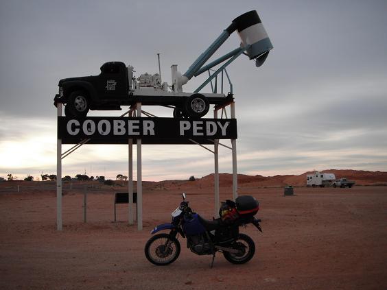 Marlaから230キロ程でCoober Pedyの街に着きます。手前35キロ位から小さな山がポコポコとあります。ここはオパール採掘の街なので山は掘った土砂です。5年前はオパールの採掘坑を利用した地下に部屋があるモーテルに泊まりましたが、今日はキャラバンパークに野営です。夜はエラく冷えそうです。
