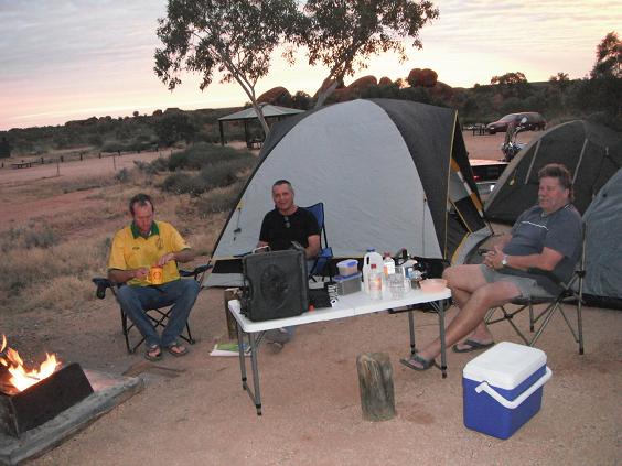 結局5時半頃まで昼寝して、ミューズリーバーを晩飯にしました。その後隣のバイク3人組Bob、Lee、Wayneのテーブルに招かれ(彼等はトレーラーを引いているので、テーブルに椅子、冷たいビールまであります)、9時半過ぎまで話してました。彼等はQueenslandのTownsvilleから来た鉄道マンです。ケープヨークで出会ったRodgerと一緒ですね。
