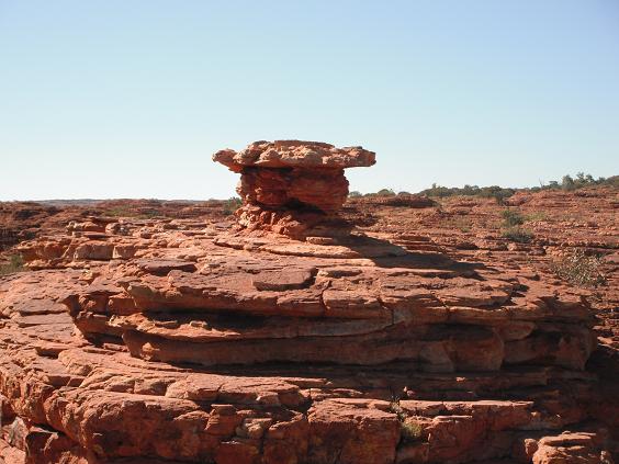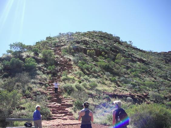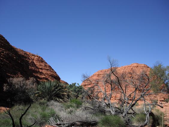Mount Ebenezerから52キロ走ると、Kings Canyonへの分岐点です。Luritja Roadです。分岐点から170キロくらいでKings Canyonに付きます。途中のKings Creekにて給油とランチ。ラクダバーガーを食べました。値段も味もビーフと変わりません。9.50ドルもします、流石僻地です。ここでは日本人ワーホリが2~3人働いてました。よくやるなぁ。頑張れ!