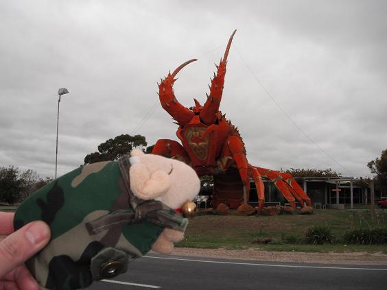 出発したトタンに大きなロブスターが現われた!これはこの旅のビッグシリーズ第一弾、ビッグロブスター。さっそくヒツジさんと写真を撮る。