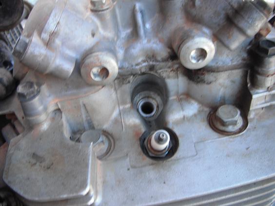 まずは、バイクのプラグを外してみました。うーん、黒く焼けてますね。