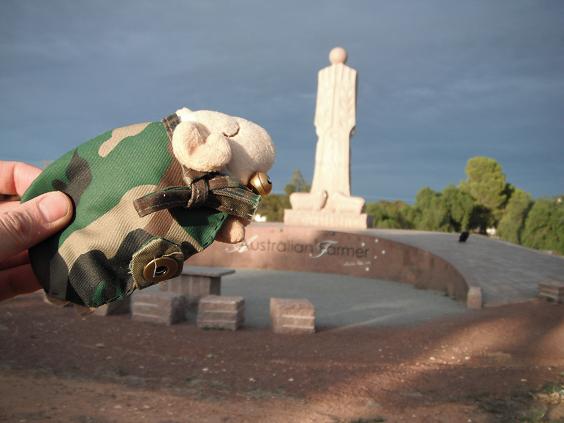 下の写真はWudinnaにあるAustrakian Farmersという大理石の彫刻です。ヒツジさんたちも登場です。
