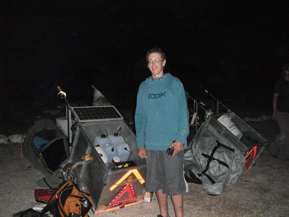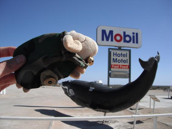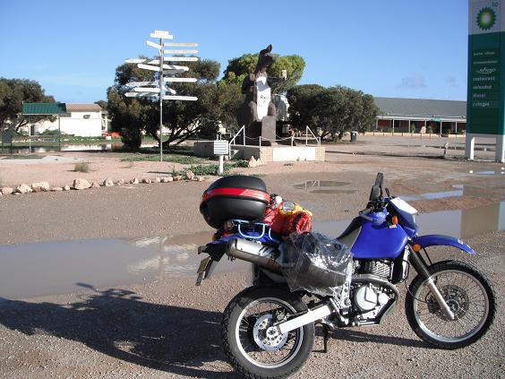 オージー2人組のライダーは、モーテルの方に泊りなんですが、わざわざキャンプ場まで話しに来てくれました。彼等もナラボーではめちゃくちゃ燃費悪くなってるとのこと。トライクの方は100キロで8リットルで悪くなったと思っていたら、今は100キロで10リットルまで悪化したそうな。とすると、ワシの燃費の悪さは普通なのかな?それから、2人組でリアカーを引いてパースからシドニーまでを目指してるオージーと出逢う。ここまで既に1ヵ月。あと3ヵ月はかかるそうです。16年前のウールワースの人の話をしたら驚いてました。