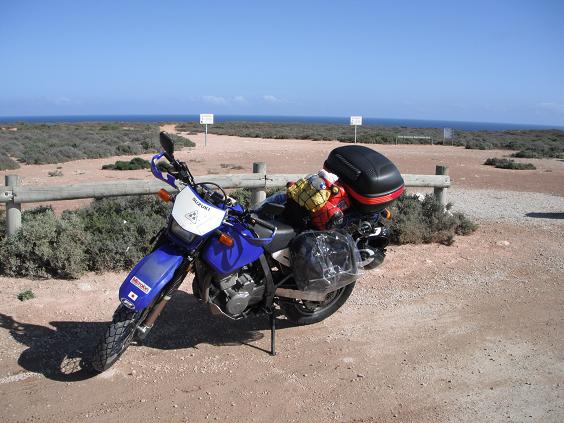 5時半に起きて出発の準備。朝日を見ながらテントを畳んだり。今日は昨日のネットの予報では、ところどころ雨が降るかも。予報どおり、Cedunaを過ぎた辺りから雨が。でも、たいした降りでもなく、100キロほど走ったら晴れて来ました。それにしても、燃費が悪い。14キロ位しかリッターで走りません。うーん、心配。吹けも悪くないし、全体的に調子はいいんだけどね。風がそんなに強い訳でもないし。そんなこんなでNullarborに到着。ここまで来ると、見渡す限り地平線です。エアーズロック周辺とはまた趣きがちょっと違います。ちと、あー来たなぁー、と感動です。