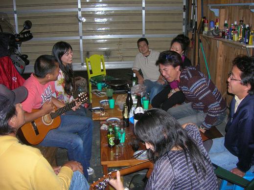 夜はツーリングクラブNSTCのメンバーとチャーリーさん宅でBBQパーティーです。プロのミュージシャンIZUMIさんが駆けつけてきたところで、BBQパーティーがいつの間にやらフォークソング大会に変わってました。