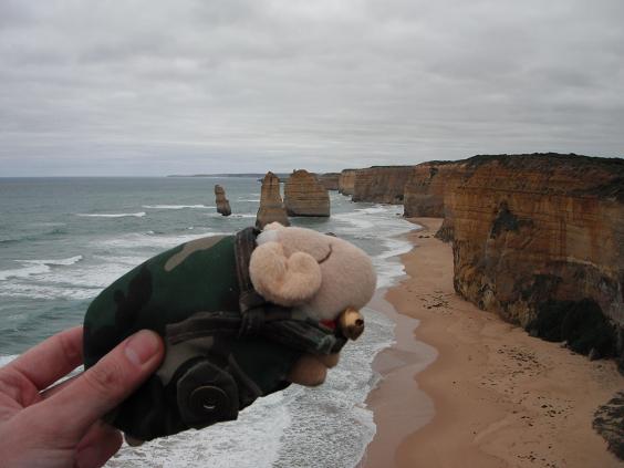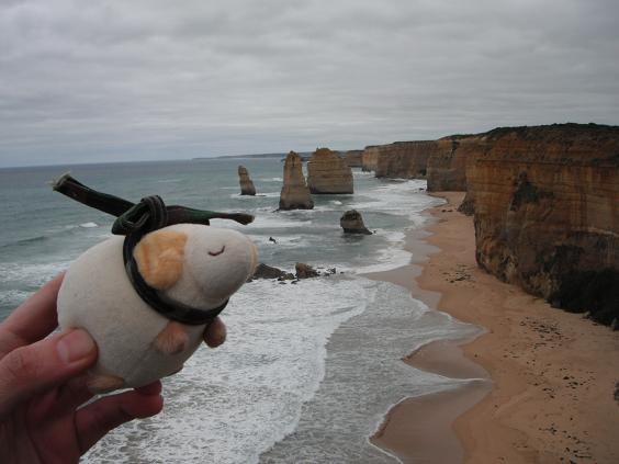 朝7時起きて出発の準備。相部屋のイギリス人Terryに別れを告げ、まずはスーパーで朝飯のミューズリーバーを買う。街中のElizabeth stのバイク屋でレインパンツ買って、いざGreat Ocean Road (GOR)へ。今日は曇りだけど風はない。
