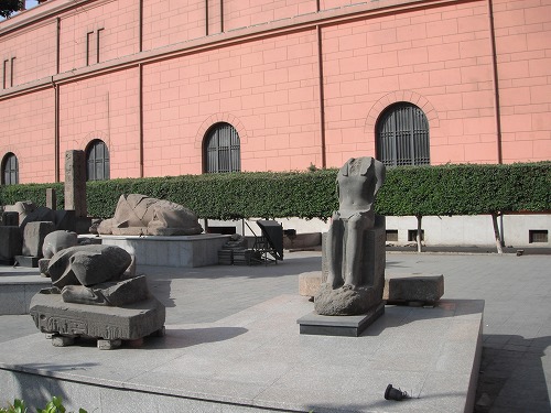 宿から博物館へは歩いて15分ほど。ほう、やって来ました、カイロ考古学博物館。9時チョイ過ぎに到着ですが、既に混雑(9時に開館です)。入館料は60ポンド。そして王室のミイラ室には100ポンドの入室料がかかります。