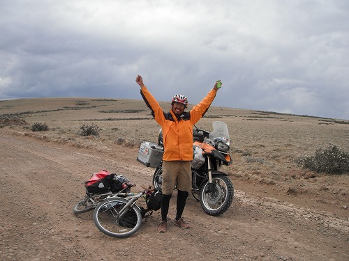 Around 80km before Tres Lagos, I saw a cyclist. I slowed down and looked at him, and he was a Japanese. I parked my GS and greeted him.His name is Fukura Nezumi, cycling from Benos Aires down to Ushuaia. This is his 1st trip oversea! He has got balls. He was heading to El Calafate, so I will see him there in a few days. Buen viaje!