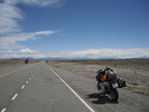 トレス・ラゴスからは舗装路になります。ここまで斜め後ろからの追い風だったので燃費が良かったのですが、ここから向かい風になります。なので燃費ががた落ち。あれよあれよという間に、オンボード残り航続距離計が下がっています。あとカラファテまで120キロと標識が出ましたが、残り航続距離が150キロ! このまま風が強くなり燃費が落ちたら、ガス欠??、とちょっとビビリながら走ってました。