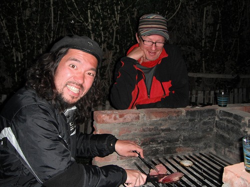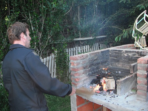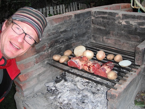 夕飯は肉屋で牛肉と炭を買って、キャンプ場のParrilla(BBQ台)でアサード(Asado=焼肉)をすることに。ポールがアルゼンチン人直伝の焼き方を披露してくれました。