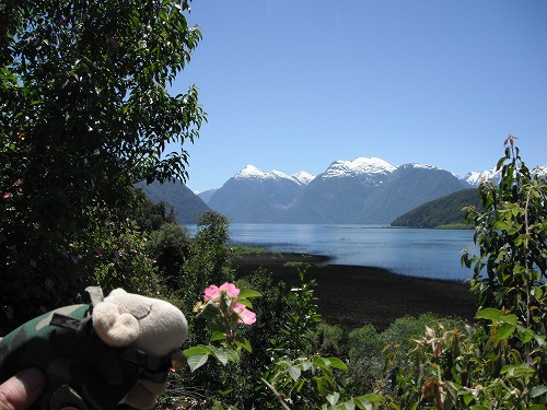 先ずはプジュアピ(Puyuhuapi)を目指します。ダート道を走ります。12時前に到着。本当は昨日ここで一泊の予定だったのですね。かるくホットドッグと珈琲を昼飯がわりに。
