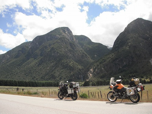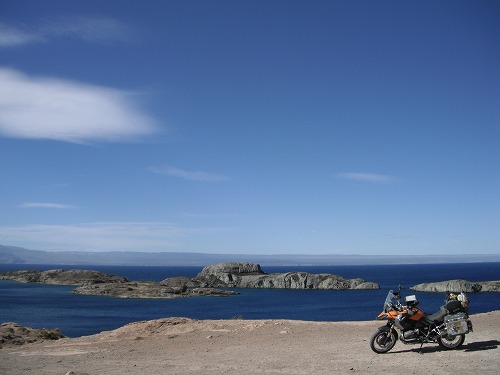 しばらく待っていると、BMW F800GSがやってきました。ワシ等のバイクを見て停り、挨拶。アルゼンチンのブエノスアイレス出身のフリアンさん。息子さんと友達の3人で2週間のツーリング中なのだそう。しばらくバイクの話に花が咲きます。ブエノスアイレスに来たら連絡して、と。やったね。