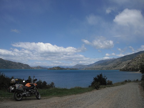 ここからダートです。プエルト・ムルタ(Puerto Murta)まで100キロちょっとです。所々砂利が深いところがあったり、道が狭いところがありましたが、まぁ、走りやすいダートです。