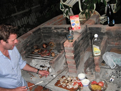 We decided to have BBQ again! So we went to shopping and set fire on coals. Paul bought "Bife de CHorizo" the best grade beef. We cooked potatos, sweet potatos, and onions on the grill. Accomapied with tomato and onion salad, excellent. The beef was cooked perfactly by Paul and we all had a great time.