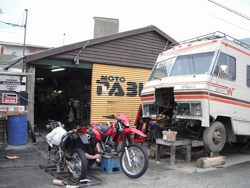 さて、今日は朝からウベのキャンプ場に行き、ウベと連れ立ってバイク屋「Moto Pablo」へ行きました。残念ながらウベのチェーンは有るけどスプロケットが無い、と。