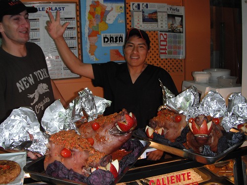 ワシの場合はタイヤが1,300ペソ、パニア修理が380ペソ、オイルが300ペソ、そして工賃が480ペソと2,430ペソ(600米ドル)とお高いマンエン。しかし、必要経費ですねコレは。ドロールとアンジェラが見に来てくれて、一緒にエンパナーダを食べました。ブラジルでの再会を約束して別れました。Buen viaje mis amigos!!