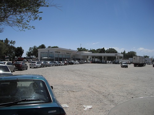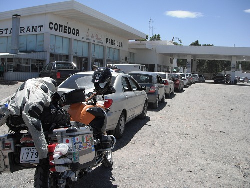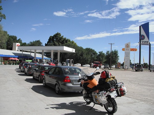 San Antonio Oesteのガソリンスタンド「YPF」にて給油、と思ったら、ものすごい行列。向かいの「SHELLしかし」には行列が無いので行ってみると「ガソリンは無し(No Hay Bafta)、」との張り紙が。あの行列に並ぶとなると、1時間は待ちますね。しかしこの先のスタンドにガソリンが無い場合を考えて、給油することに。