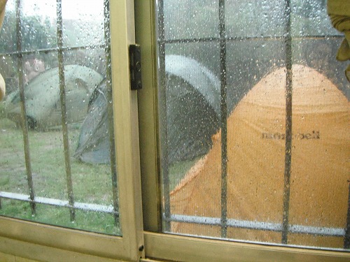 もう夜の10時ですが、だいぶ雨脚は収まってきたとはいえ、まだ降ってます。テントを見に行きたいのですが、ずぶ濡れになってしまうので、まだキッチンで待機中です。