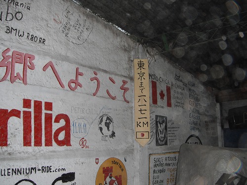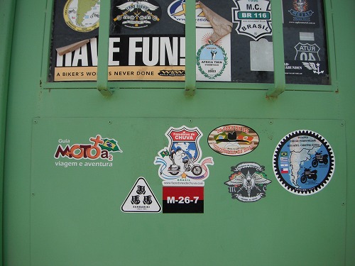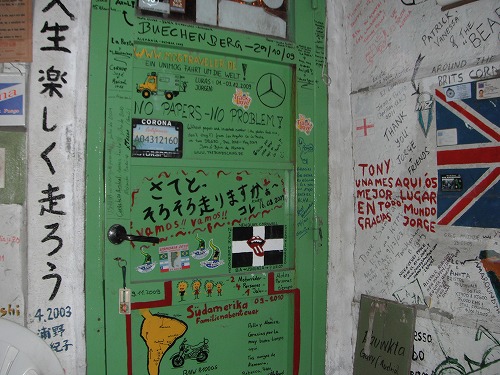 ホルへさんは昼寝中ということでモニカさんが対応してくれました。中もライダーの寄せ書きだらけです。日本人ライダーの寄せ書きも多いですね。藤原夫妻、どいうらさん、石澤夫妻などなどWTN-Jでおなじみの方々の寄せ書きも。