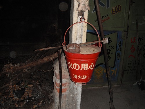 「火の用心 消化砂」なんて書いたバケツまであります。東京まで18,171キロ、だとか。庭にテントを張り、休憩。