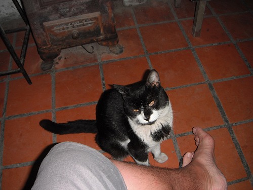猫がすっごくなつっこいです。名前はなんと「ミツビシ」。日本贔屓なんですね、ホルへさん。ホルへさんが起きて来たので挨拶。50歳を過ぎているとのことですが、若々しい!! ワシが持ってたイメージとは全然違いました。