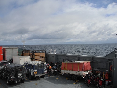 船着場に到着し早速、チケットを購入。バイクは10,000ペソ(運転手も含む)。イバちゃんは5,500ペソ。まぁ、こんなもんですかね。2時間チョいで対岸のポルベニール(Porvenir)に到着するそうです。