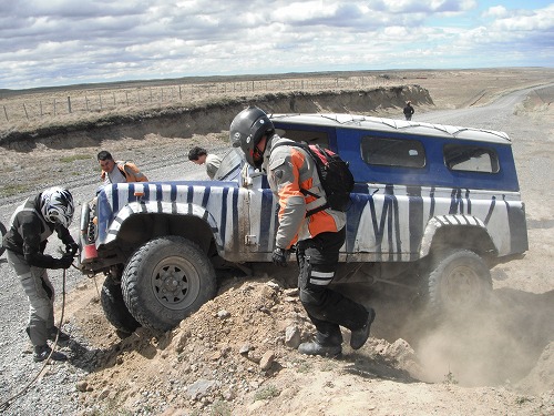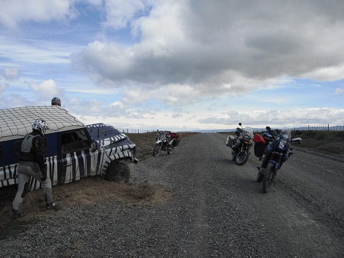 We landed on the island. We had lunch at Porvenir and head to Argentin border. The road was unpaved. The wind was really strong.