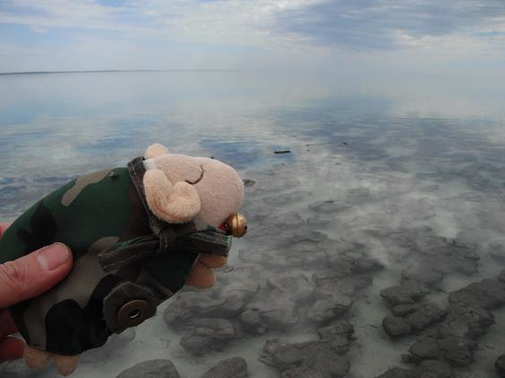 Billabongから47kiloほどで、Overlander Roadhouseがあり、モンキーマイアへの分岐点になります。モンキーマイアへは155キロほどです。ここら辺一体は世界遺産なんですね。途中でShell Beachに寄り道。ここは海岸が全て貝殻が堆積したものです。小さな貝殻が沢山あります。でも、あんまり大した事ないですね。