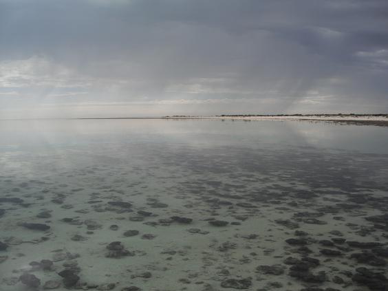 モンキーマイアには9時半頃に到着。入場に8ドルかかります。場合によっては1泊する覚悟でしたが、幸い海亀も見れましたし親子イルカにも間近でみれましたので、20分で退散!Carnarvonを目指します。途中デンハムで給油をしてると、降って来ました。今日はずーっと曇ってたのでさほど暑くはなかったんですが、軽い雨で涼しく快適に走れました。