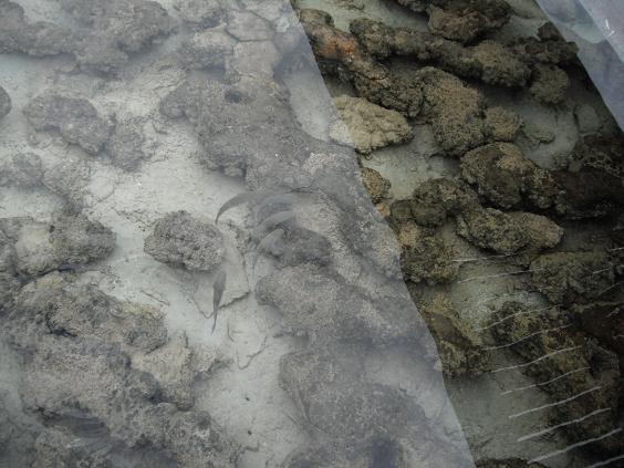 本線に戻る手前の Hamelin Poolにて最古の現存する生物ストロマトライト(Stromatolite)を見に行きました。海岸の浅瀬に棲息する岩みたいな生物ですが、なんか幻想的でイルカやShell Beachよりも気にいりましたね。