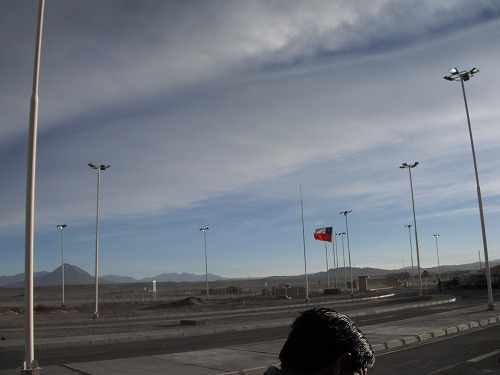 国境に到着したのは5時過ぎ。皆降りて入国審査と荷物の検査。皆無事に通過。この旅で15国目チリに入国。それにしても風が強い。