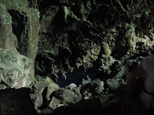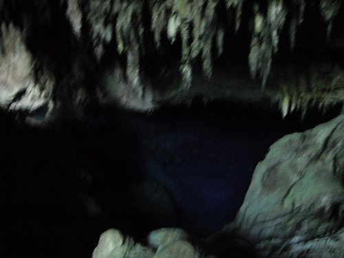 鍾乳洞の内部は以外に広く「蒼い湖」がある底まではかなりの深さです。