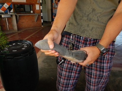 So he tried. He was banging the tang against the brick wall madly!! This is the Paraguay style!