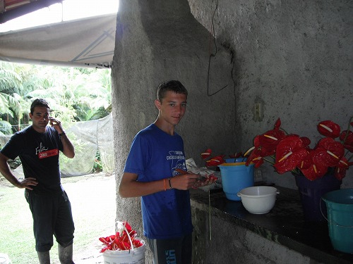 朝は曇ってましたが雨は止んでました。ダニエルたちは既に花摘みの作業を始めています。