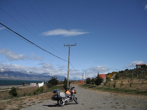 カラファテから100キロくらい走ったところで、未舗装になります。2人乗りで強風なのでちょっと緊張しますが、意外にするすると走れます。時たま、風に煽られて、「おっと!!!」って時が有りましたけど、楽しいですね。