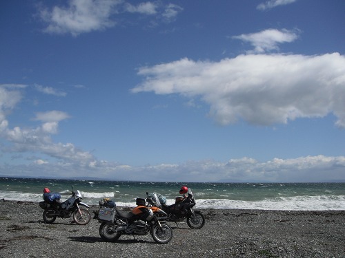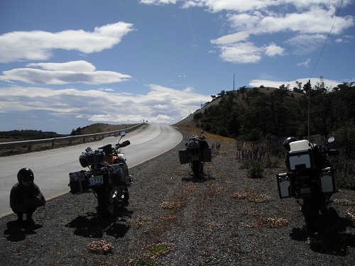 話していたら、KTMのエンジン音が聞こえてきました。ウベだ! テッドも来ました。再会を祝います。珈琲ブレイクをしながら作戦会議。ポールもプンタ・アレーナスで待っている、とのことなのでワシもプンタ・アレーナスに行くことに。クリスチャンはウシュアイアに向かうので別れを告げ、出発です。