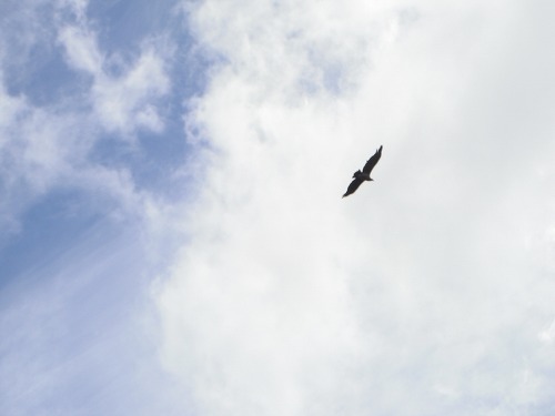 ヴァ・テウレチェス(Va Tehuelches)という街で昼飯休憩をして、一路プンタ・アレーナスまで走ります。途中コンドル(?)が飛んでいたので、バイクを停めて写真撮影。ゆったりと優雅に飛んでいきます。