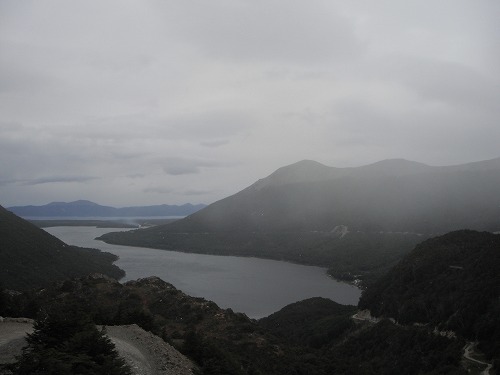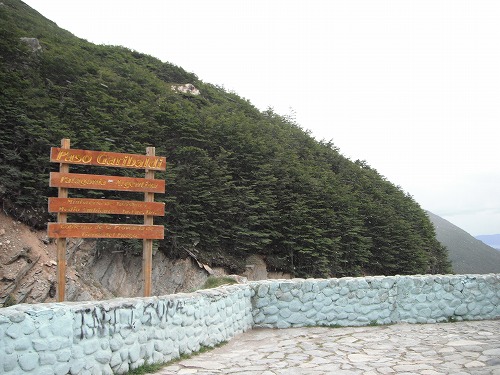 もしかしたら、ワシが先行しているかも、と思い、ガリバルディ峠(Paso Garibaldi)で一休み。なんと雪がちらついています。写真では分からないかも、ですが、結構降ってました。5分くらい待ちましたが、雪が強くなるので、出発。峠を少し降ったら、雪は止みました。面白いものですね。