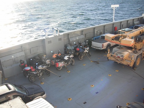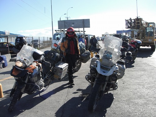 150キロのダートを走り、一気にポルベニールの港へ。フェリーは7時発なので、早めの夕飯を食べて、時間をつぶします。