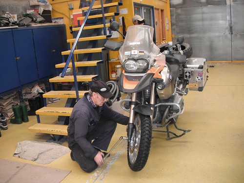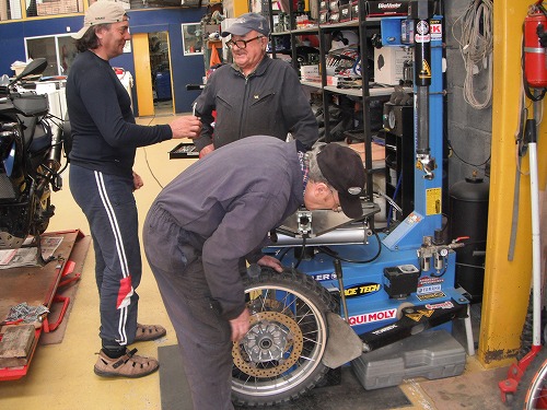 Around 4:30pm, Ted and I went back to "Moto Adventura". Out tyres were fitted and now we are cool!