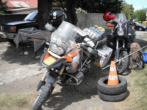 ここでF800GSに乗ったドイツ人2人がまだまだ使えるHeidenauのリアタイヤを捨ててました(今日オソルノから乗り寄せた新しいのに交換して、古いのを捨てたそうです)。ますますウシュアイアで交換するんじゃなかった!!でも、これは知りえないですからね。拾って運んでいこうかな。